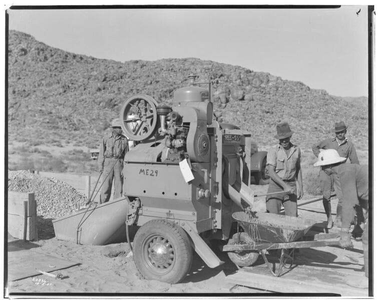 Boulder-Chino Transmission Line - man operating a #70 Cat. [at tower site] in Lucerne Valley.
