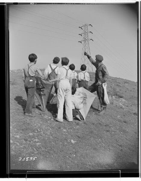 A1.7 - "Safety First" - Lineman James F. Carl cautions boy kite fliers.