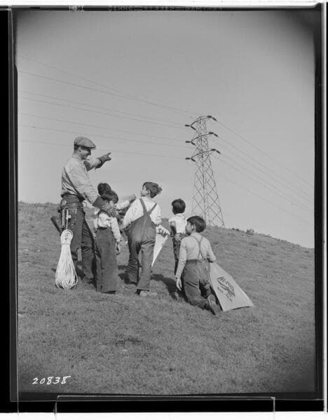 A1.7 - "Safety First" - Lineman James F. Carl cautions boy kite fliers.