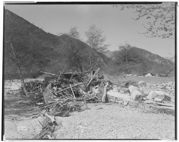 Lytle Creek Powerhouse - Storm Damage of March 2, 1938 to Lytle Creek diversion and intake.