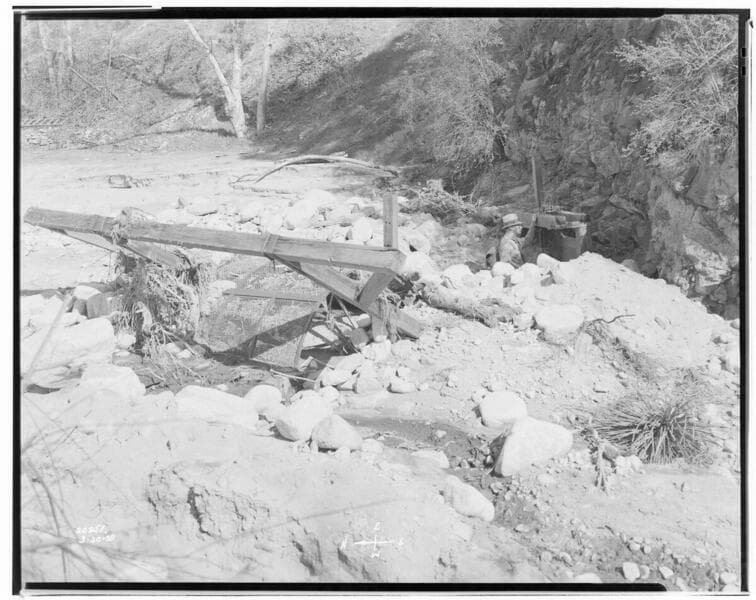 Santa Ana River #2 Powerhouse - Storm damage of March 2nd at SAR 2 - Broken flume line and tunnel.
