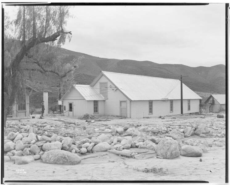 Mill Creek 1, 2&3 Powerhouse - Rubble around Mill Creek #1 after flood of March 1938 - showing new channel cut around powerhouse.