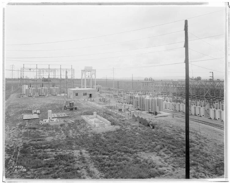 Chino Substation - General view of Chino Sub. and cottage, and transmission lines.