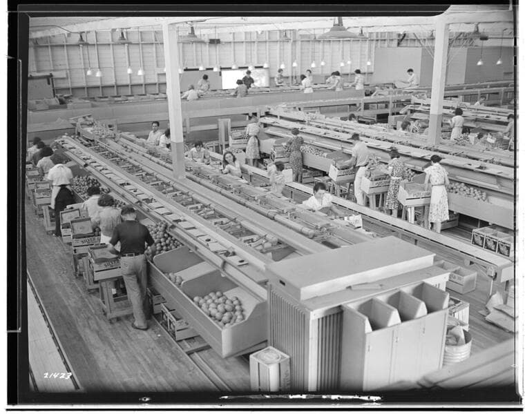 L1.8 - Lighting, Packing Plants - Santa Ana-Tustin Citrus Association - hand wrapping.