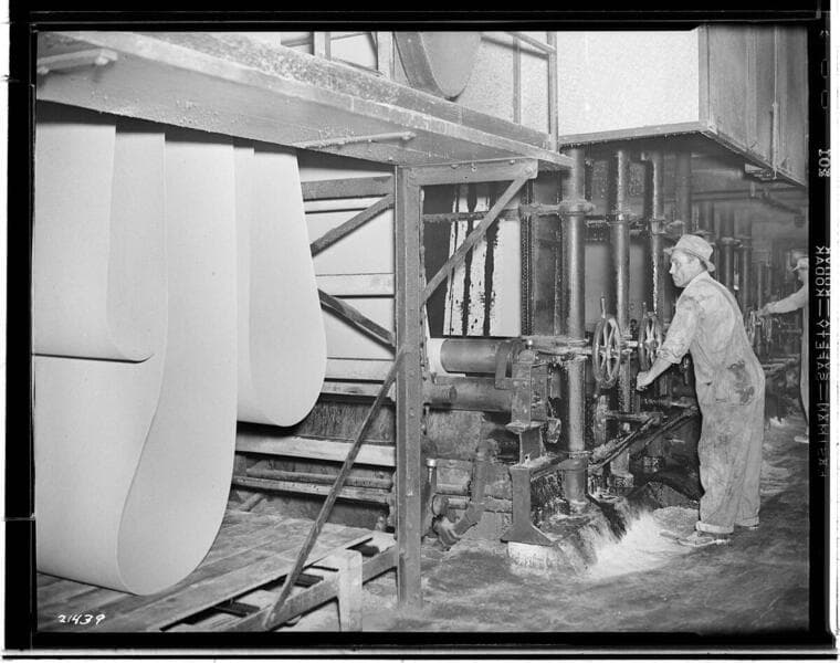 Pioneer - Flintkote Co. - cutting roll roofing.