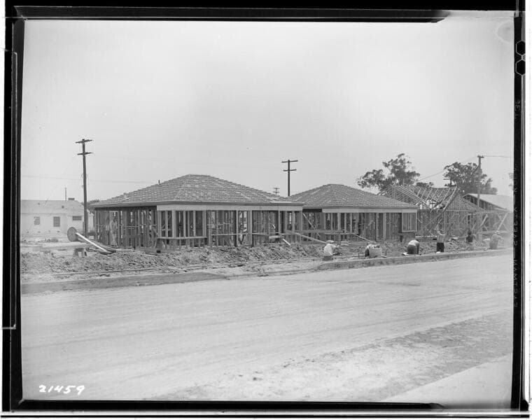 H2.2 - Home Electric Home Tour - San Gabriel Village - Bilton Inc. - model home [in framing stage - carpenters at work].