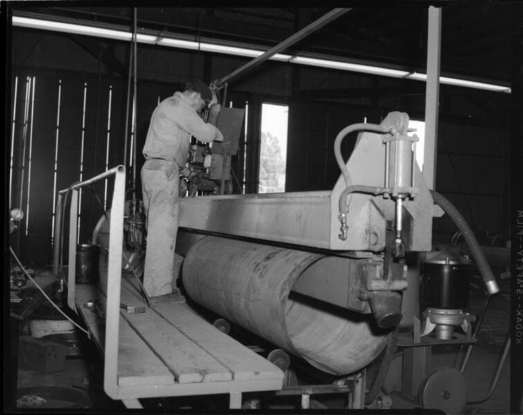 American Pipe & Steel - [machinist X-raying weld on steel pipe]