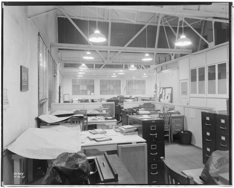 L1.1 - Lighting, misc. - Industrial Lighting - Drafting Room of Vultee Aircraft (after) - Downey.
