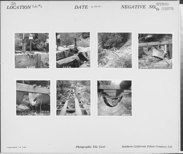 Kern River No. 3 - Corral Creek Flume footing 6W [plus two similar flume shots: (#25642, & #25643) on same photocard.].