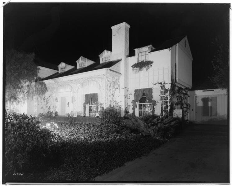 L1.1 - Lighting, misc. - Christmas lighting - home exterior, Beverly Hills - decorated pine tree in front yard.