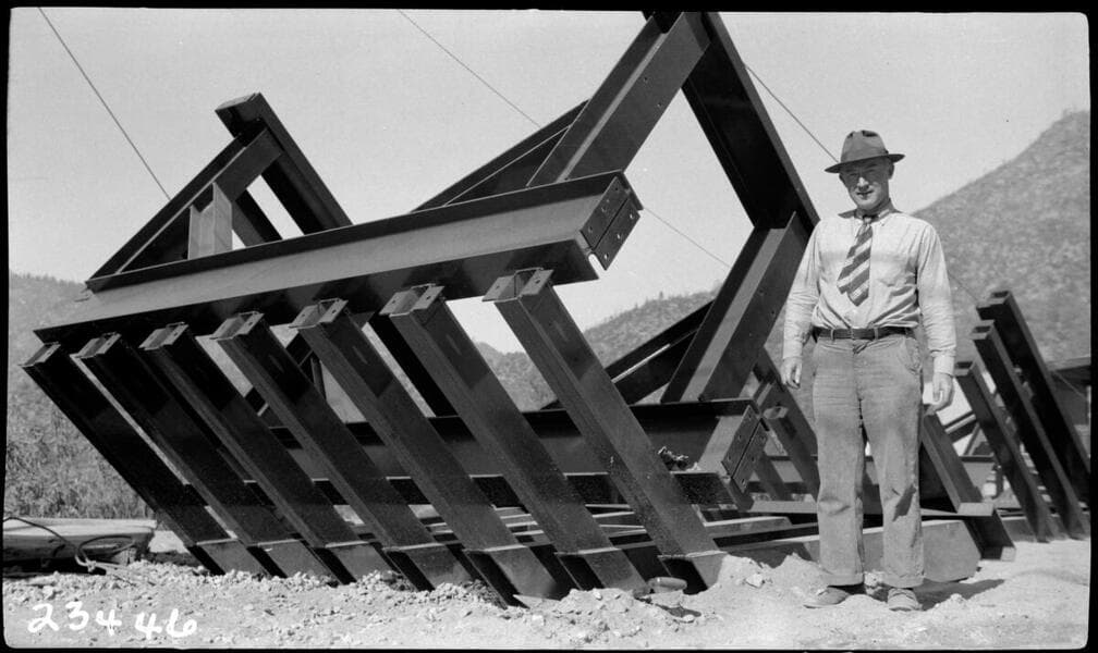 Big Creek Powerhouse #3 - Dam 6 - View from above [top of Dam #6] showing placing of trash rack, etc.