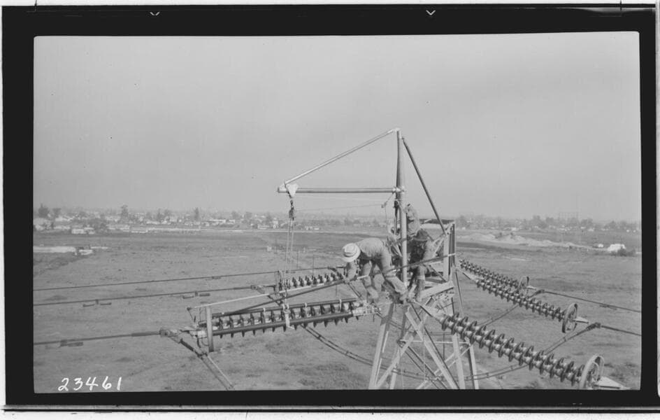 Miscellaneous Transmission - Live line dead-end insulator changing device. [plus close-up of insulator (#23413) on same photocard]
