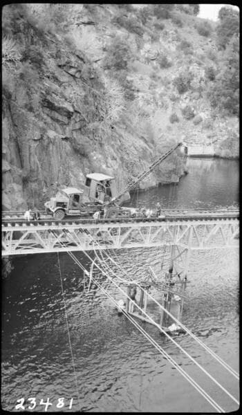 Exterior shots of Powerhouse No. 2, full shot of Powerhouse 2 and 2A, generator floor in Powerhouse 2, Unit 6 bucket failure (Powerhouse 2) with close-ups of damage, damage to overhead crane from flying No. 10 bucket, Powerhouse 2-2A switch rack, Dam 5 intake trash rack cleaner, water rheostat test, transporting 220kV transformers, gate house, penstock "Y"s, rotor installation, Powerhouse 2.