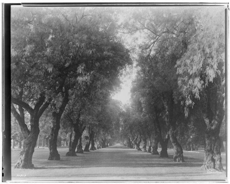 L1.2 - Lighting, streets - A night view of Sherman Way, showing the ornamental lighting posts.