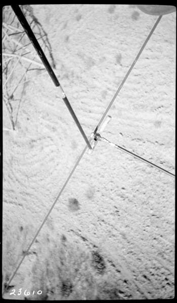Miscellaneous Transmission - Installing an early style Stockbridge Vibration Dampener on one of the Big Creek transmission lines, with new "Hot Sticks"about 1930.