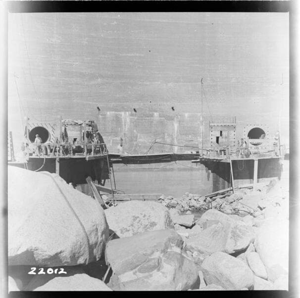 Big Creek Powerhouse #3 - Dam #6 - Looking down on gunite fillet, Fresno side.