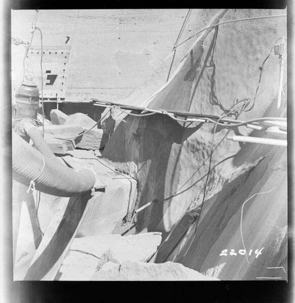 Big Creek Powerhouse #3 - Dam #6 - Looking down on gunite fillet, Fresno side.