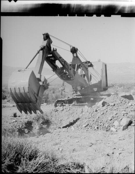 Permanente Line Poles - Excavating with heavy equipment in desert for tower line.