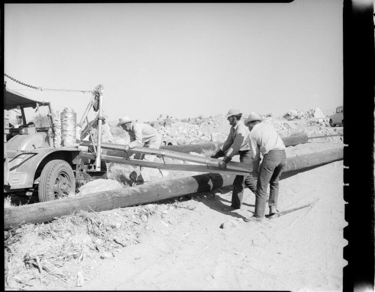 Permanente Line Poles - Men assembling H-frame pole prior to erection.