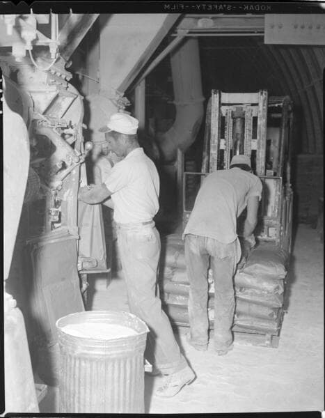 Victor Limerock - men working with rock moving into plant on conveyor belt.