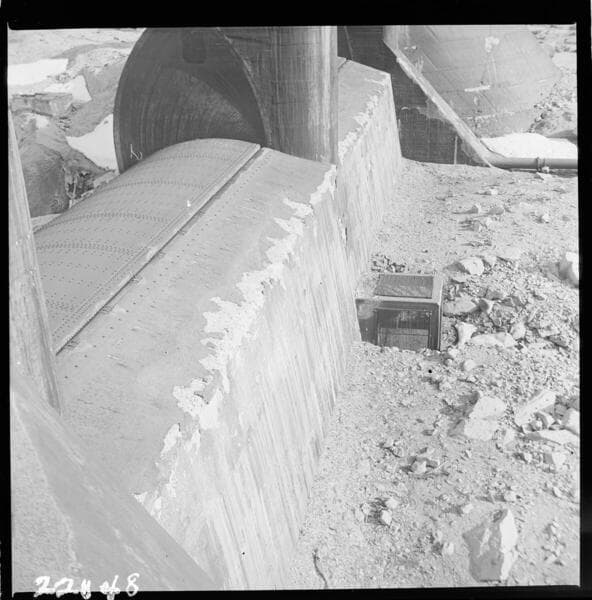 Big Creek, Florence Lake Dam - Arch 53, looking down on sluice gate.