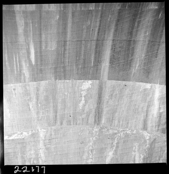 Big Creek, Florence Lake Dam - Close-up view of section of open seam on Arch 9 at elevation 7296.