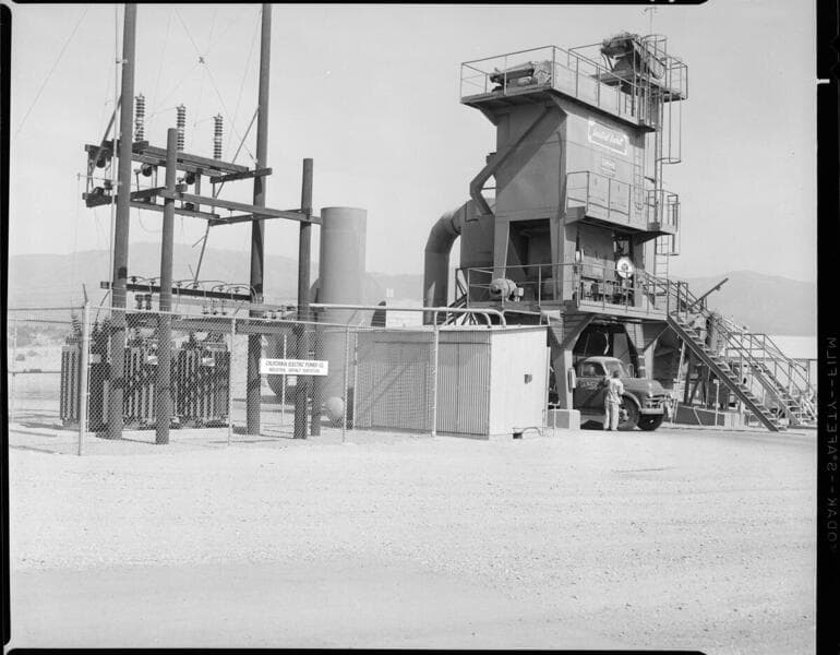 Triangle Rock Products Inc. - Truck picking up load of industrial asphalt - exterior of plant