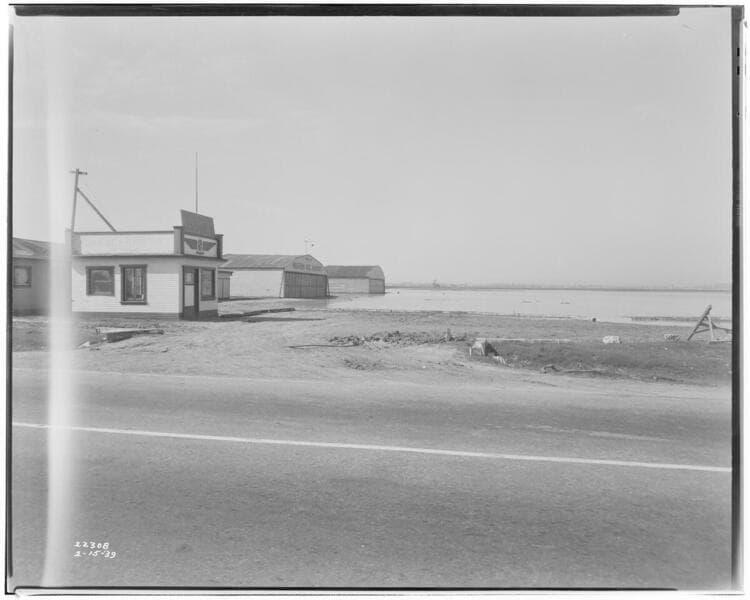 Power Consumers - Airports - Biplane at Mines Field - Ernie Smith - front. [this field became Los Angeles International Airport after WWII]