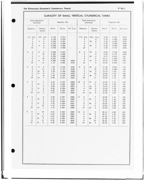 C1.1 - Charts miscellaneous - Capacity of Oil Tanks