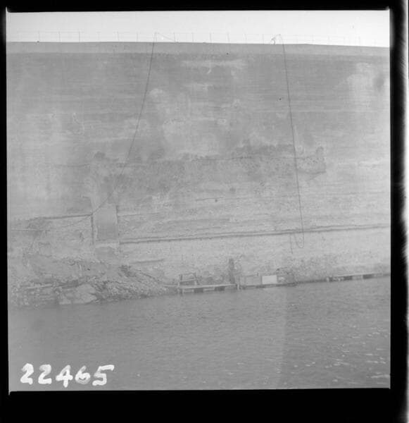 Big Creek, Huntington Lake Dams - Dam 1 Close-up upstream face 5+50 to 6+50, lake elevation 6874.
