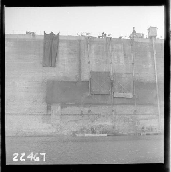 Big Creek, Huntington Lake Dams - Dam 1 Close-up upstream face 5+50 to 6+50, lake elevation 6874.