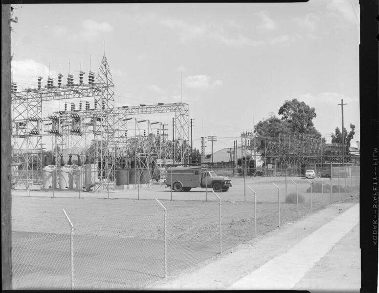 Substation. With 10 negs., No ID for any of the images. Shots are of a substation (interior and exterior). May be Exeter Substation.