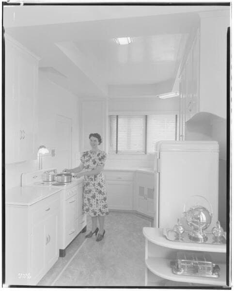 H2.3 - Home Kitchen - Electric Kitchen - Mrs. William M. Newman at electric range.