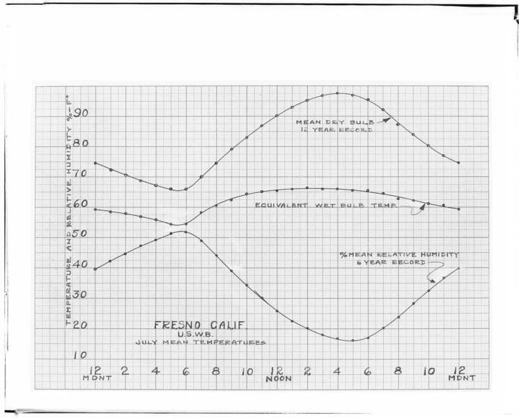 C1.1 - Charts miscellaneous - Weather chart for California - July mean dry bulb temperature at noon based on all available records up to and including 1932.
