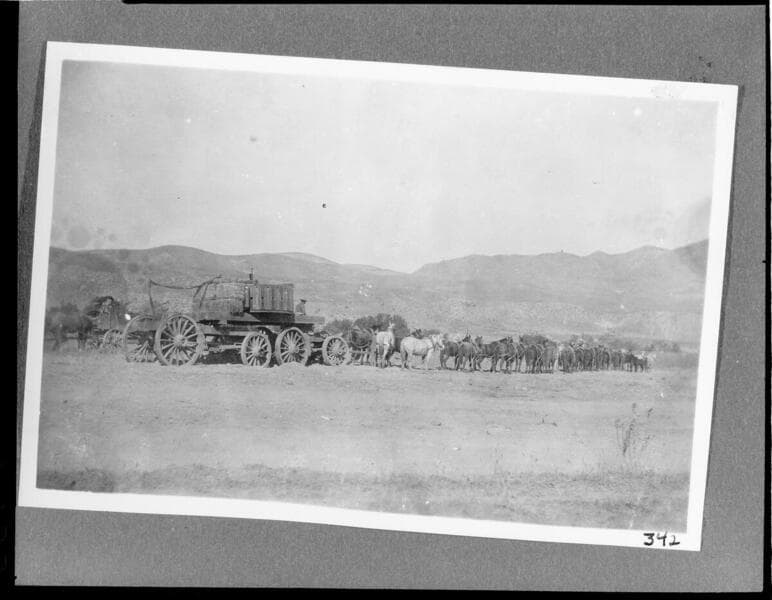 Kern River #1 - Rotor being hauled by a 30-horse team at the mouth of Kern River Canyon.