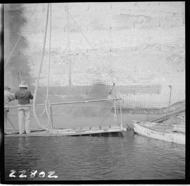 Big Creek, Huntington Lake Dams - Dam 1 Upstream face - Close-up of gunite at water line. Lake elevation 6847