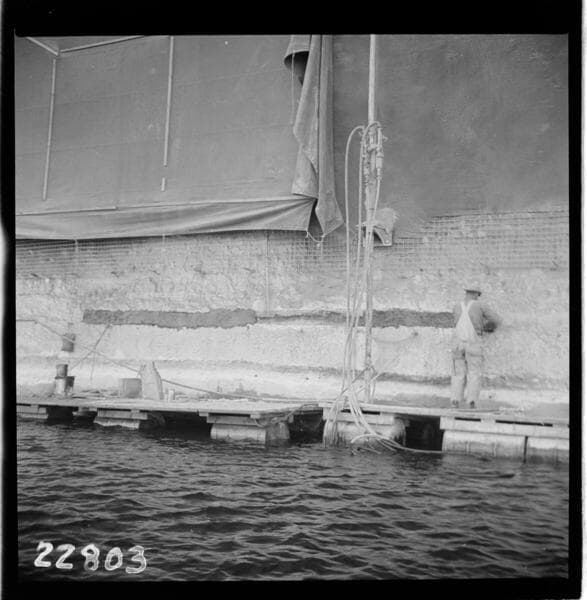 Big Creek, Huntington Lake Dams - Dam 1 Upstream face - Close-up of gunite at water line. Lake elevation 6847