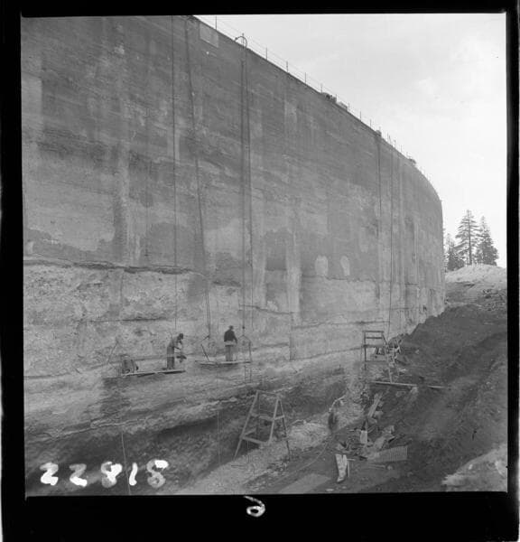 Big Creek, Huntington Lake Dams - Dam 2 Upstream face - View showing guniting and chipping in progress from station 6+90 west.