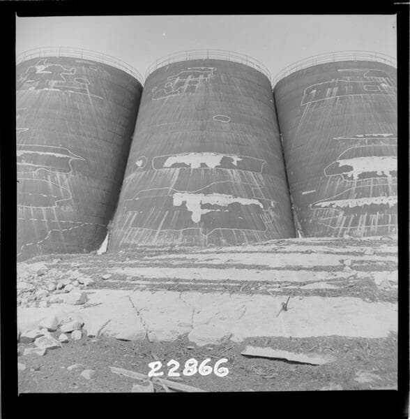 Big Creek, Florence Lake Dam - Arch #52 after extrados inspection. Marked day's work joints had been chipped preparatory to guniting when this photo was taken.