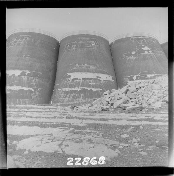 Big Creek, Florence Lake Dam - Arch #52 after extrados inspection. Marked day's work joints had been chipped preparatory to guniting when this photo was taken.