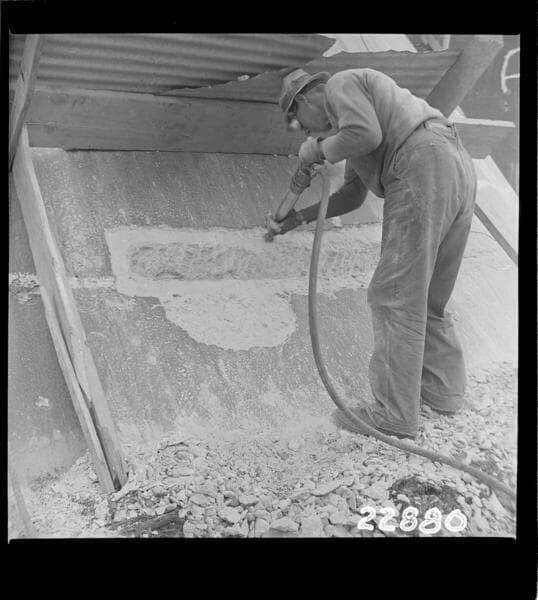 Big Creek, Florence Lake Dam - Day's Work Joint Repair April 1940. Chipping on Arch #19.