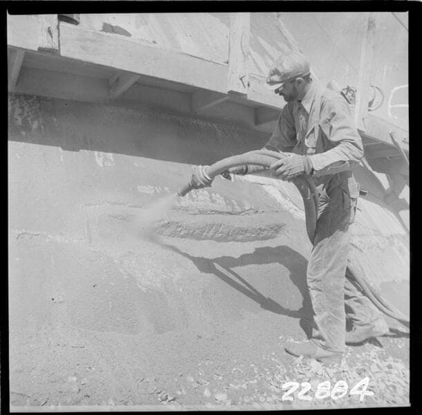 Big Creek, Florence Lake Dam - Day's Work Joint Repair April 1940. Arch #51 after guniting.