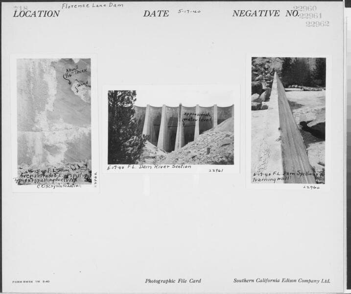 Big Creek, Florence Lake Dam - Florence Lake Dam [close-up angle from downstream side of river section].
