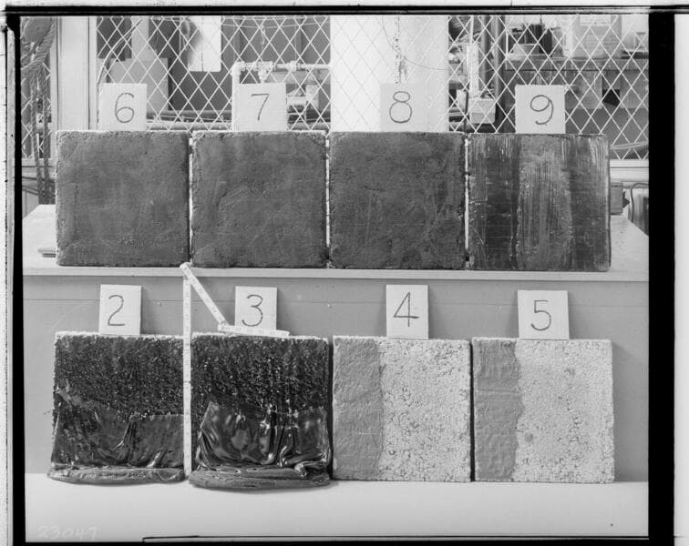 T2 Testing - Close-up of Union Oil Co. asphalt membrane after Cracking and Crazing test.