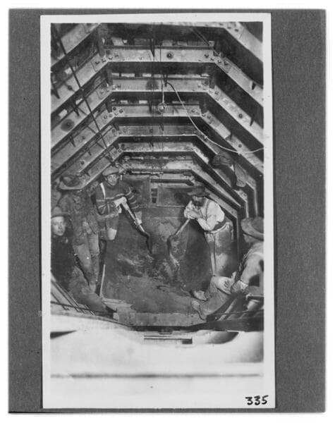 Kern River #1 - Penstock about to be lowered into tunnel.