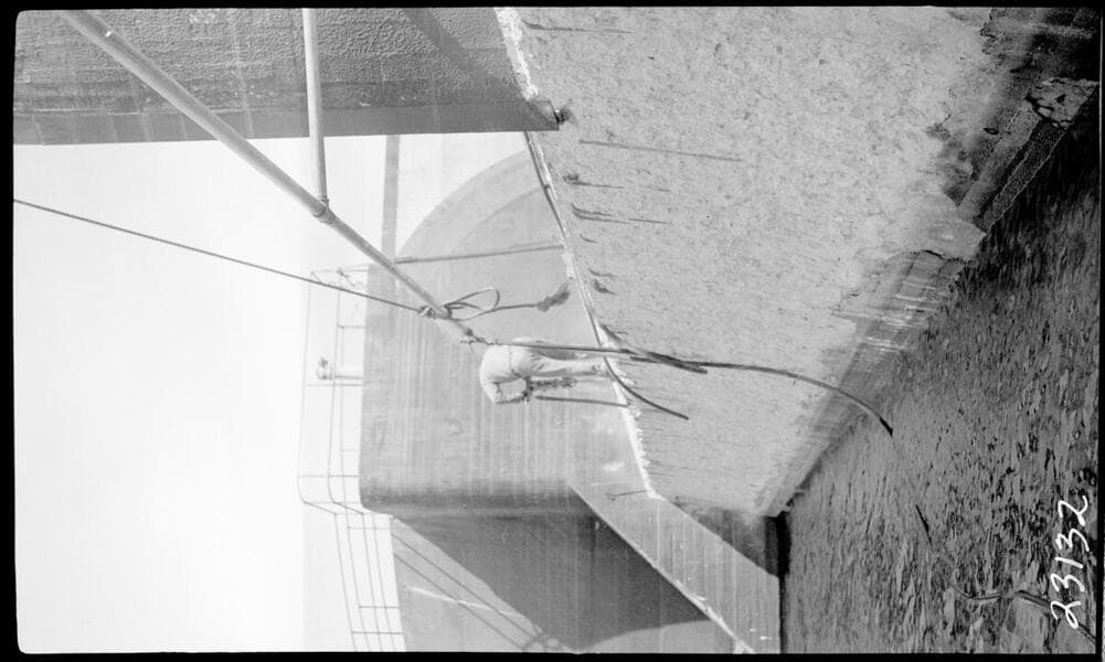 Big Creek, Florence Lake Dam - Gunite checking on upstream face of spillway.