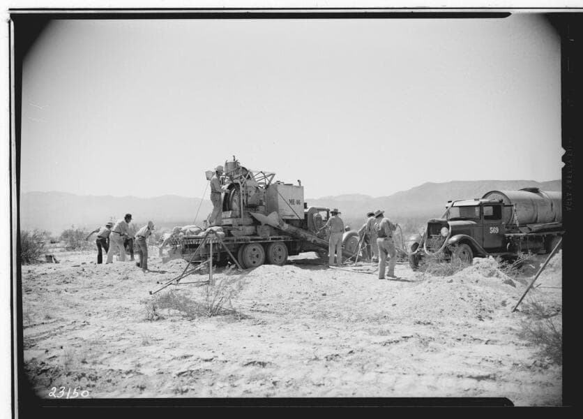 Boulder-Chino Transmission Line - Drilling for concrete pile foundations.