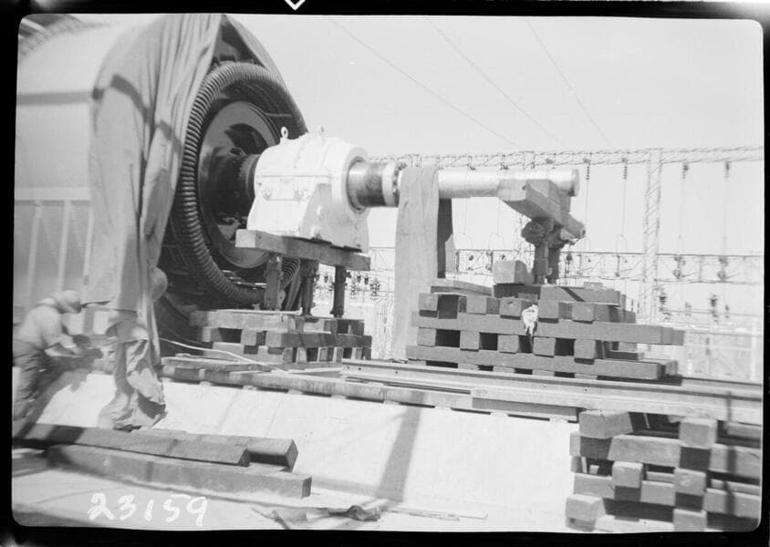 Barre Substation - Putting north bearing in place on shaft, June 6.