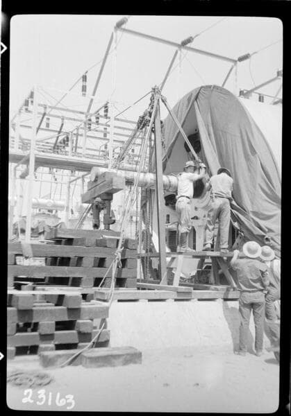 Barre Substation - Putting north bearing in place on shaft, June 6.