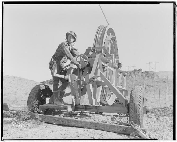 Boulder-Chino Transmission Line (2nd) - Side view of "Bull" Wheel and reel set-up at M1-T1 etc.